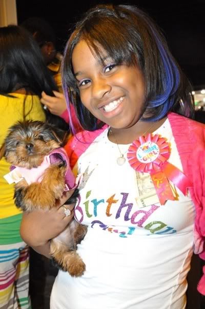 Reginae Carter had quite a bash for her 11th birthday party. Mom, Toya and Papa, Lil' Wayne hosted the bash in Atlanta this past this weekend in Atlanta. Reginae's pajama party themed bash was held at Atlanta’s Room Service: Reginae’s brother Dewayne Michael Carter III (pictured above) made his new baby debut at her party. Dewayne's mother is Sarah Vivan. They were one big happy family this past weekend. Look at all those cutie pies! Several celeb figures were on hand for the party: Tiny was there with her ninos as was singer Monica and her sons, Kandi and Riley. T-Pain was spinnin' on the mic. Pictured are T-Pain, Ne-Yo’s mom and Reginae’s grandmother (Weezy’s mom) were also present. Mira! Now that's a cake fit for a princess! Ahh...how sweet! T-Pain and Ne-Yo’s Mothers...that hair is a bit curious, chica. Mami and daughter are looking simply fabulous Tiny again Monica and her handsome Papi Chulos Grandma Carter The girls I like the invite! Classy move mom & dad The birthday girl and her pooch Wonder what she wished for? Happy birthday, Reginae.