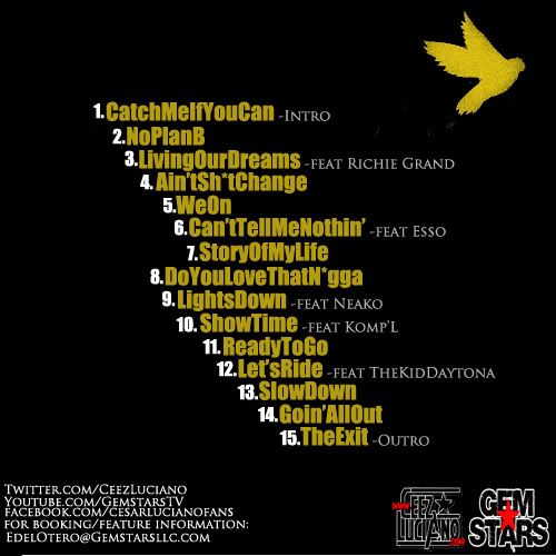 Cesar Luciano linked with New York indie label Gemstars LLC in 2010 and with two reputable mixtapes to his credit in 2011, he has been consistent with his product.On ‘Black Thursday’ and the critically acclaimed ‘Great Depression,’ Cesar stayed close to home with the production utilizing the skills of his cohorts and labels in- house production team. The response was positive from websites such as XXLMag.com and infamous Hip-Hop blogger KevinNottingham.com, so it was inevitable that another project would be presented before the sun set on 2011, enhancing the thousands of downloads he already he has to his credit.
